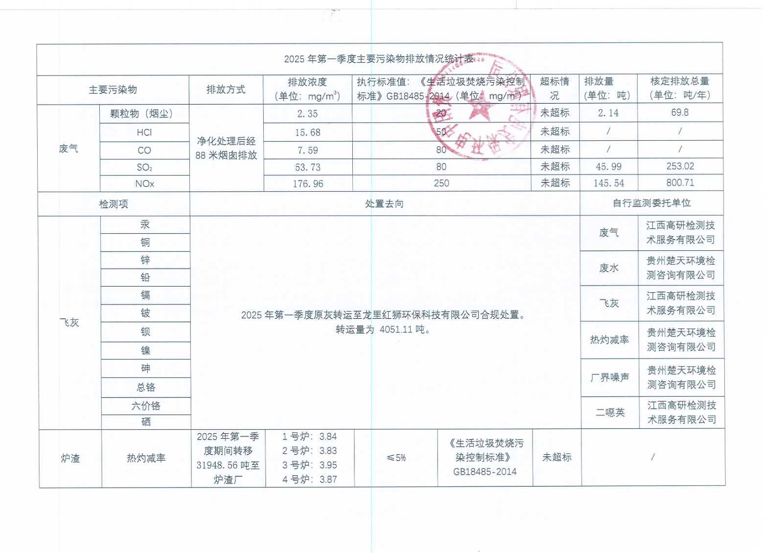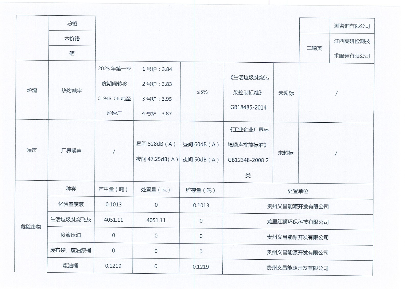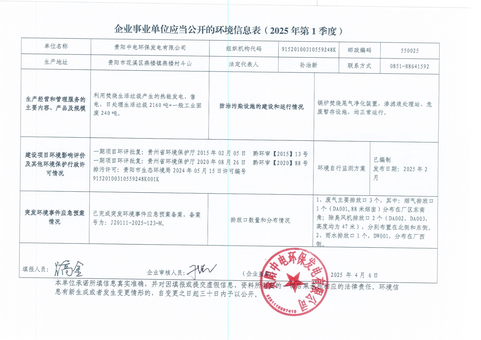 贵阳中电环保发电有限公司环境信息公示(2025年1季度)